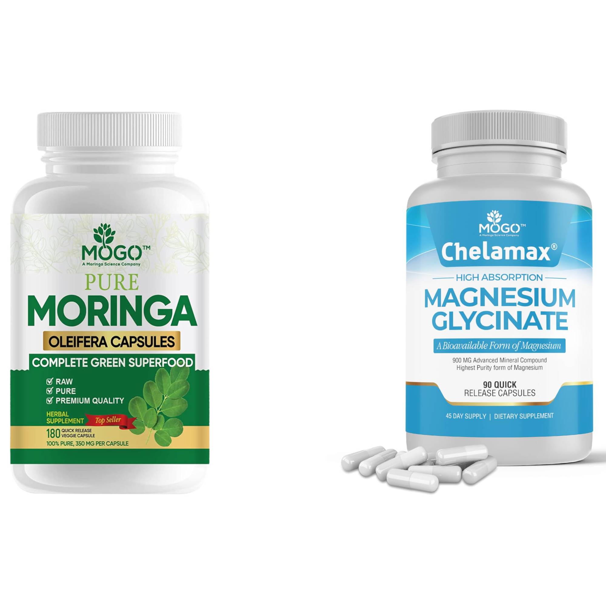 MOGO Moringa and Magnesium provide a synergistic blend of essential nutrients that work together to enhance your well-being. With the potent benefits of Moringa's rich antioxidant profile and Magnesium's vital role in muscle function and relaxation, our products are designed to support your daily health needs.